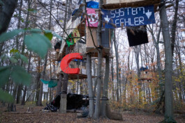 Es war ein Ereignis, als das "C" das "DU" verließ, um danach verschiedene Orte misslungener Klimapolitik zu besuchen. Natürlich war es auch im Hambi, ich durfte es begleiten. Wir standen nahe der Abbruchkante des Tagebaus und wurden danach in einem der bewohnten Baumhäuser empfangen.