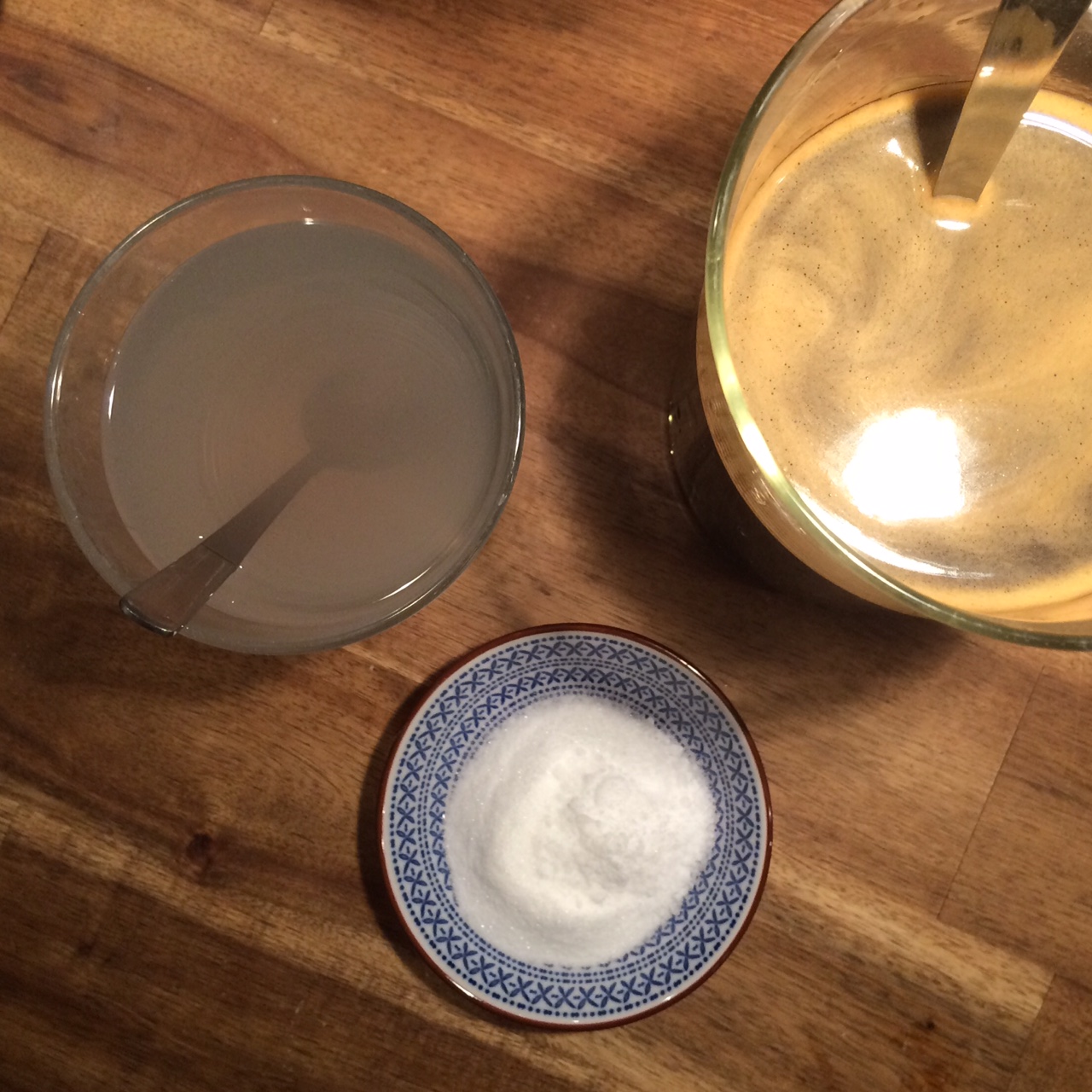 Wie auch im Originalrezept zu lesen, habe ich Kaffee und Soda getrennt voneinander gelöst. Wichtig hierbei lang genug zu warten und zu rühren, bis sich wirklich alles gelöst hat. KBr und Vitamin C habe ich zur Kaffee-Lösung gegeben, und als letzten das gelöste Soda dazu.