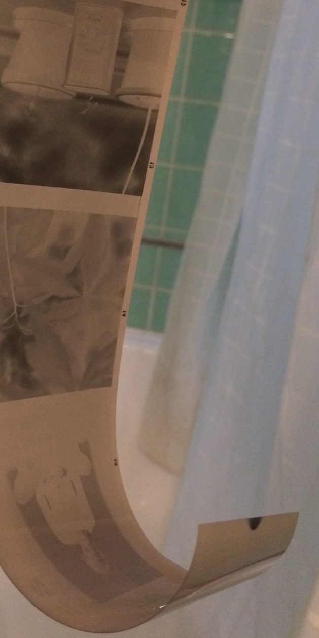 Timer auf 15 Minuten, ab in den Tank mit der Lösung. Diesen ein paar mal auf den Boden klopfen, damit sich eventuelle Luftblasen lösen und gut schwenken (ca. 5 Sekunden). Das dann ein Mal pro Minute wiederholen. Nach Ablauf der 15 Minuten entleeren, 5 mal waschen und 5 Minuten fixieren (inkl. minütlichem Klopfen und Schwenken). Film aufhängen, trocknen lassen, fertig.